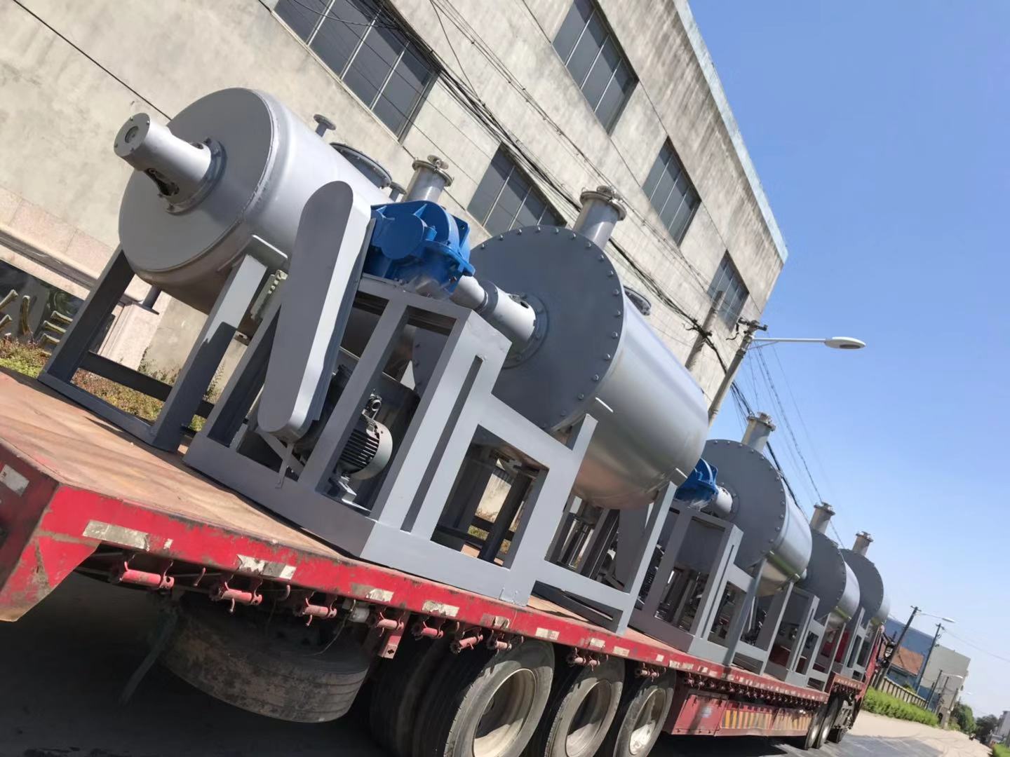 3. 加熱與攪拌:向筒體夾套內通入加熱介質(熱水、熱油、蒸汽等),熱量通過筒壁傳遞給物料。同時,驅動裝置帶動中心攪拌軸緩慢旋轉,軸上安裝的耙齒開始工作。