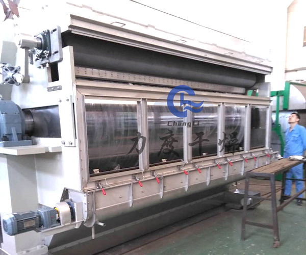 4、干燥時間短:物料的干燥周期一般只有10-300秒,在適合于熱敏性物料。若將滾筒干燥機設置在真空器中,則可在減壓條件下運行。