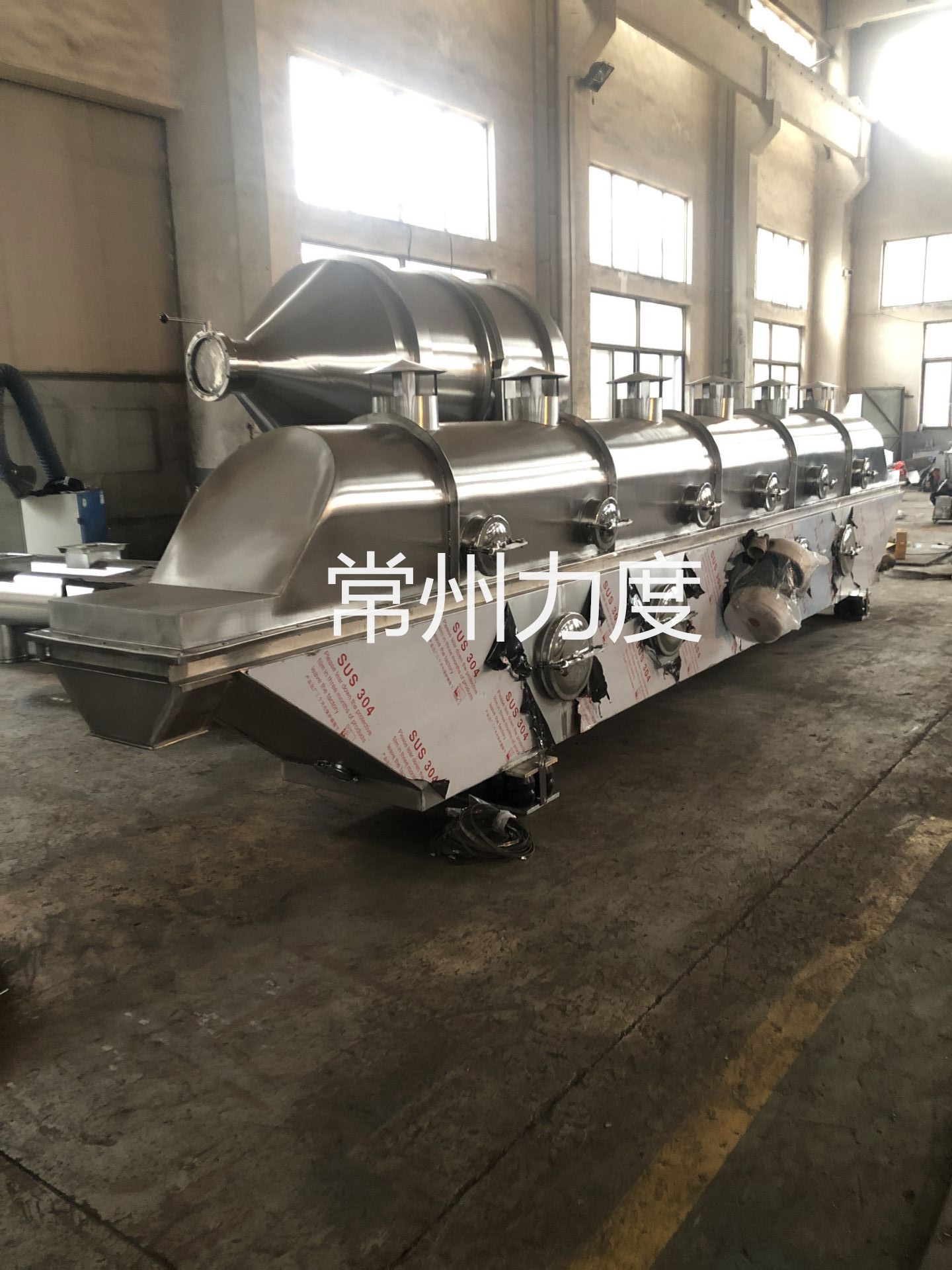 振動流化床干燥機是一種強化的有特殊用途的干燥裝置,它通過供物料^終干燥之用。由于在干燥過程中由機械振動幫助流態化,不僅有利于邊界層湍流,強化傳熱傳質,而且確保了干燥設備在相當穩定流體力學條件下工作。這種設備除具有很好干燥功能之外,還能根據工藝需要附加地完成物料造粒、冷卻、篩分和輸送等工序。