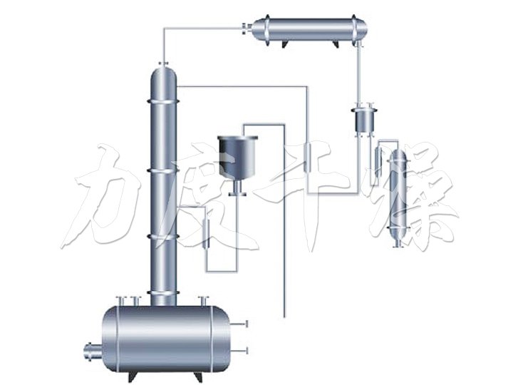 酒精回收塔  本裝置采用高效的陶瓷制波紋填料。蒸餾塔體采用不銹鋼制作,從而防止了鐵屑堵塞填料的現象,延長了裝置的使用期限。本裝置中凡接觸酒精的設備部份如冷凝器、穩壓罐、冷卻蛇管等均采用不銹鋼,以確保成品酒精不被污染。W型之蒸餾釜采用可拆式U型加熱管,在檢修時可將U型加熱管移出釜外,便于對加熱管外壁及蒸餾釜內壁進行清洗。